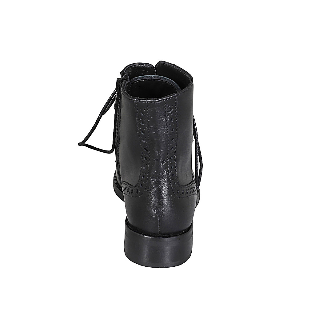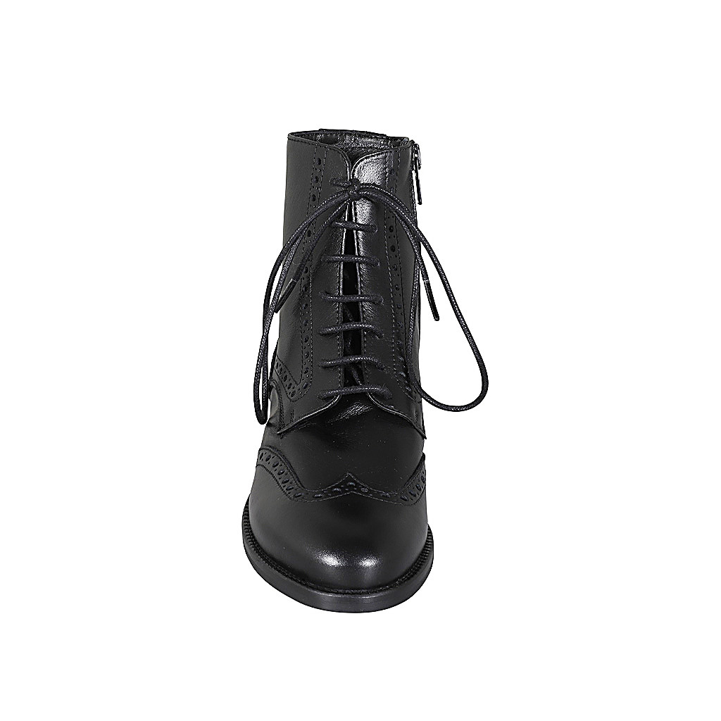 Stivaletto stringato da donna in pelle nera con cerniera e lavorazione a coda di rondine tacco 3