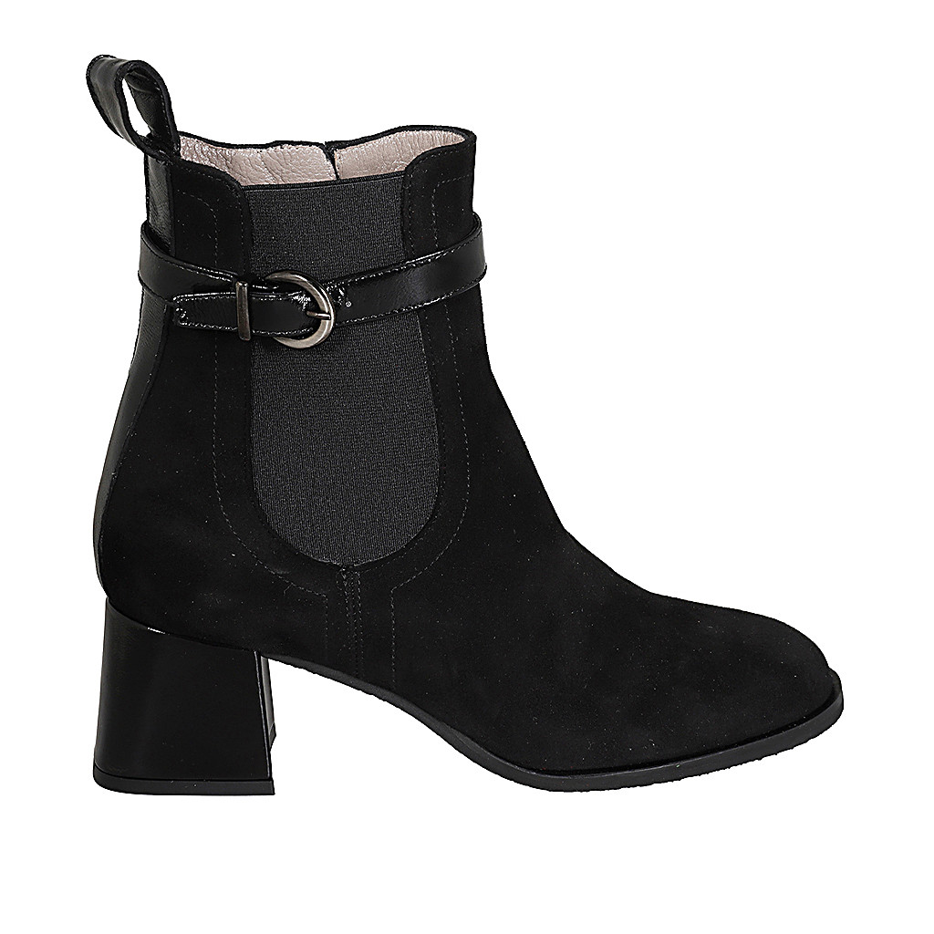 Stivaletto da donna con cerniera e accessorio in camoscio nero con tacco 7