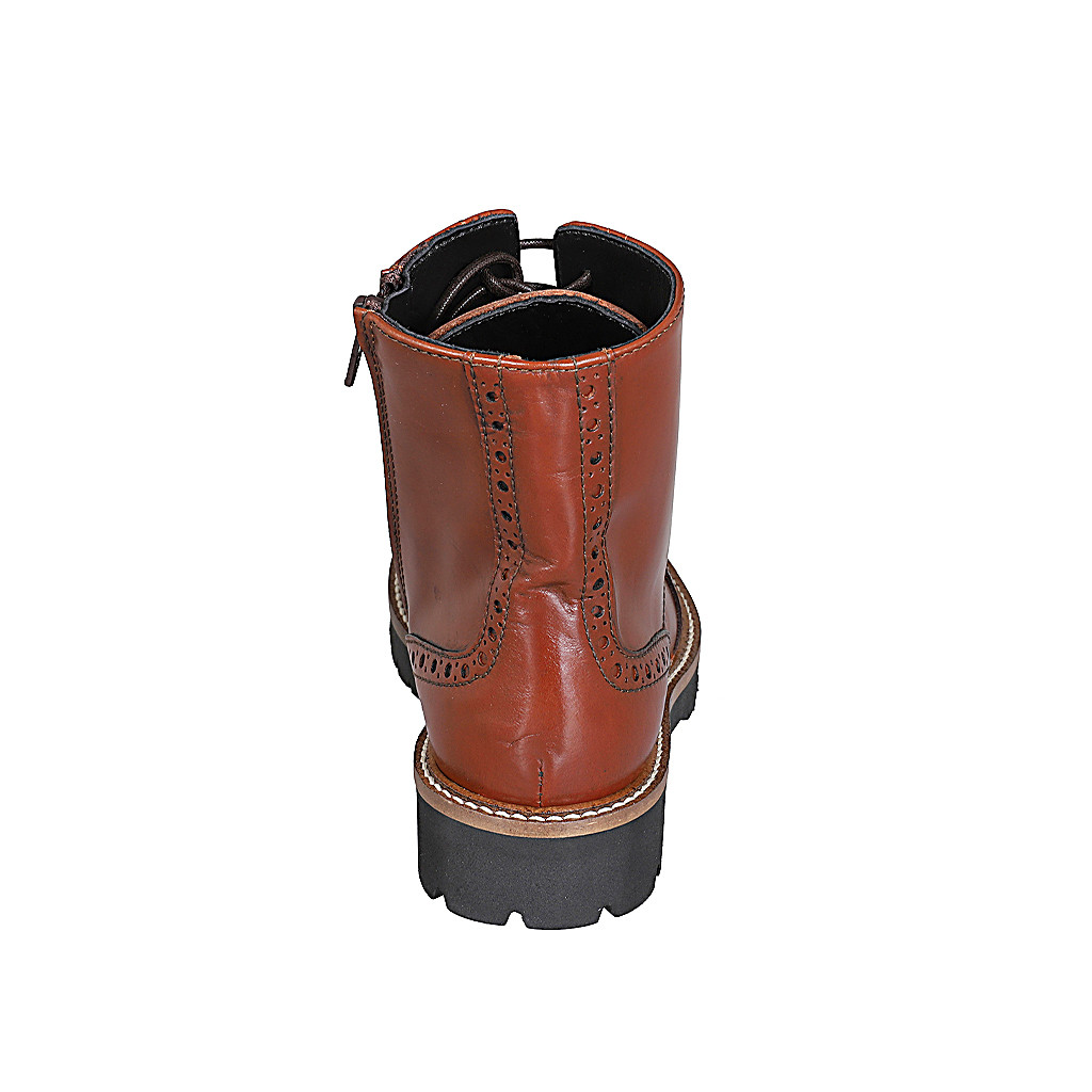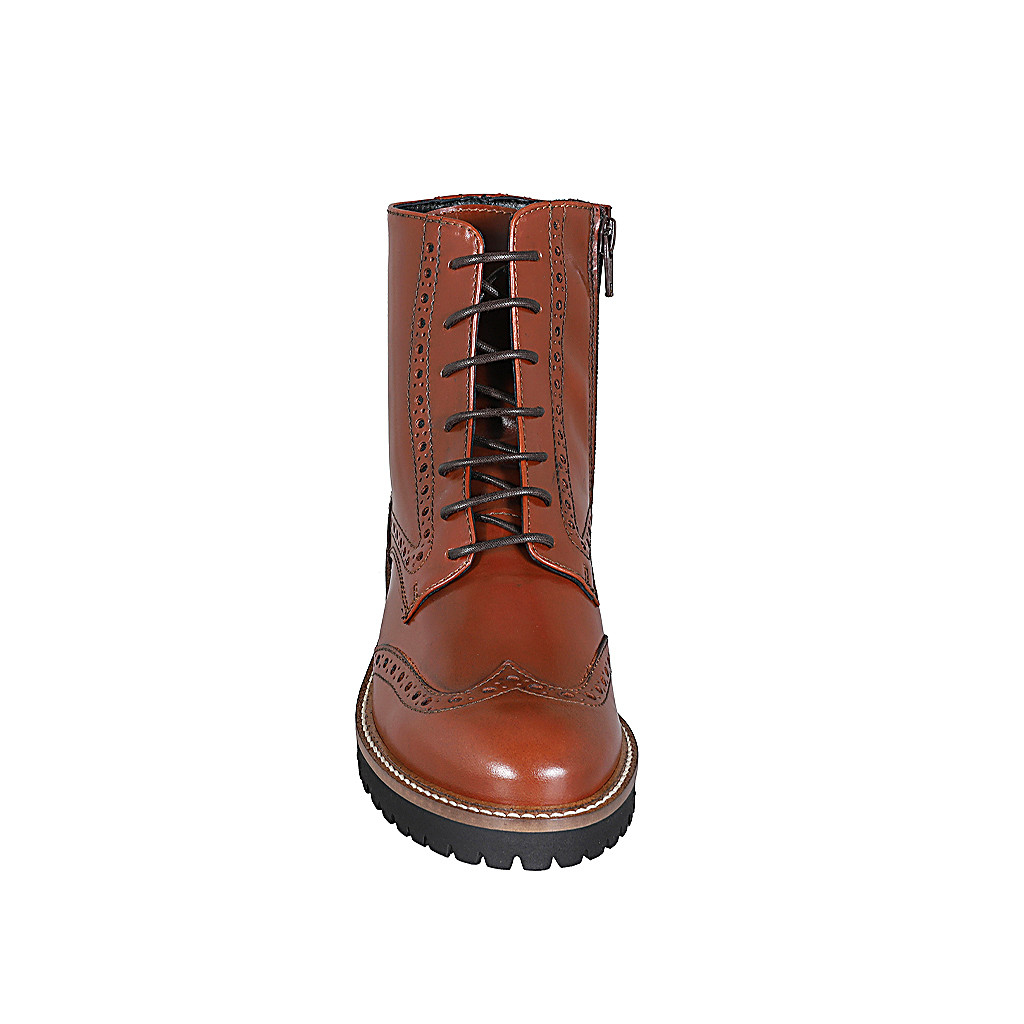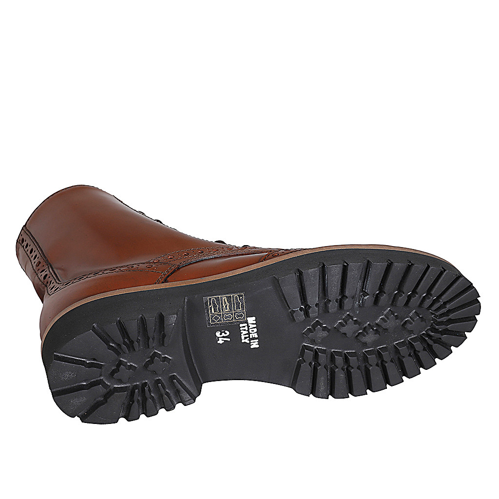 Stivaletto con elastici da donna in pelle marrone tacco 3