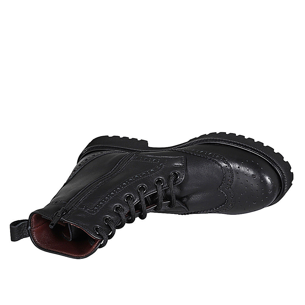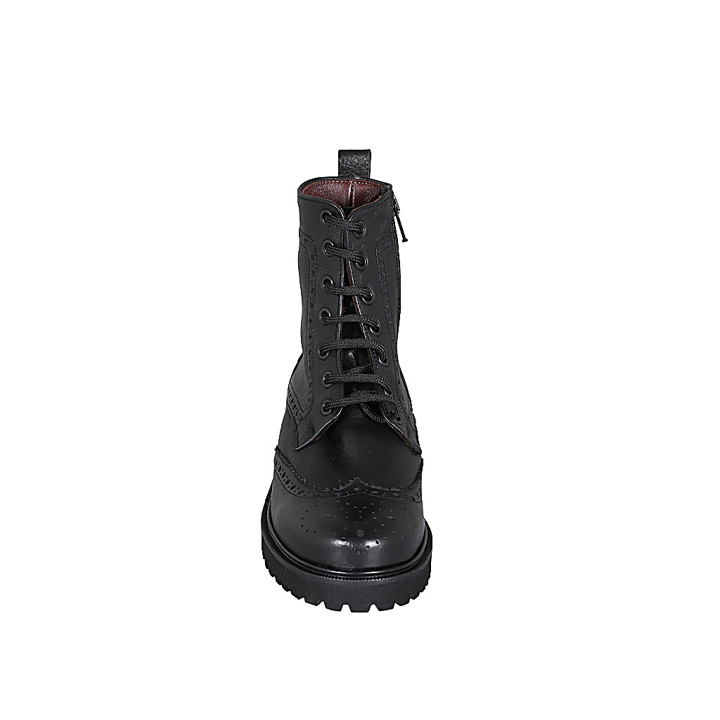Stivaletto stringato da donna con cerniera e lavorazione Brogue in pelle nera con tacco 3 - Misure disponibili: 32, 33, 45