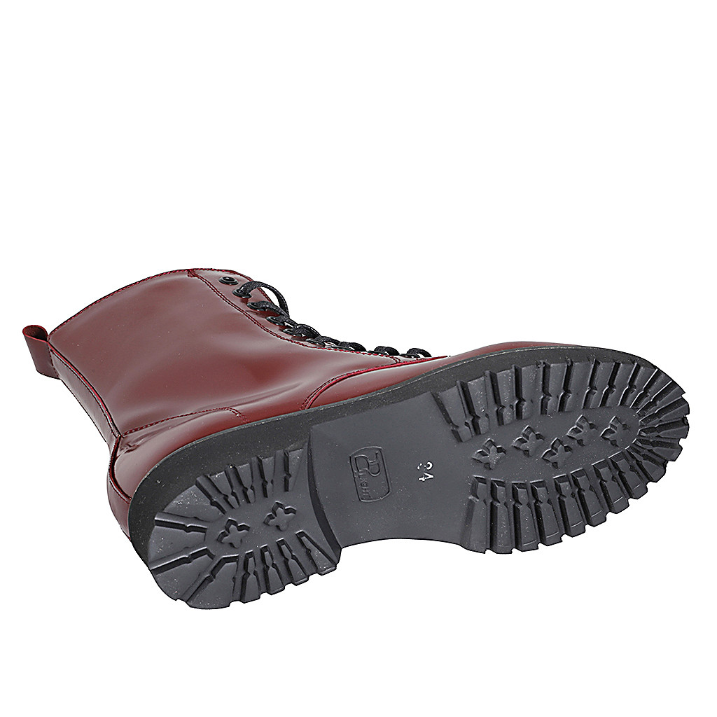 Stivaletto stringato da donna con cerniera in vernice bordeaux tacco 3 - Misure disponibili: 34, 42, 44