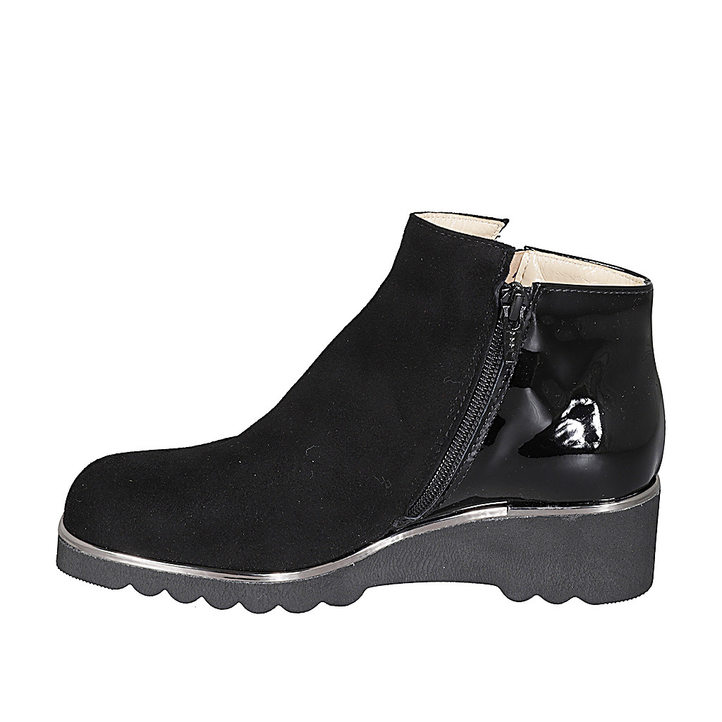 Stivaletto da donna con plantare estraibile e cerniere in camoscio e vernice nera zeppa 4 - Misure disponibili: 33, 44