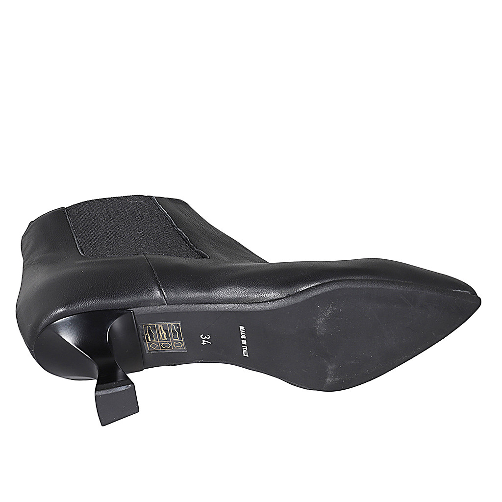 Stivaletto a punta da donna con elastici in pelle nera con tacco 6