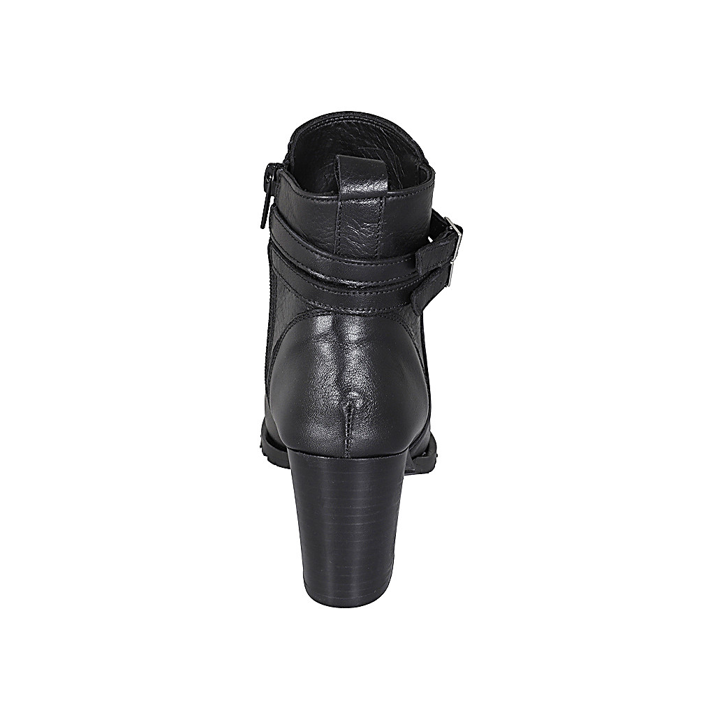 Stivaletto da donna con cerniera e fibbie in pelle nera tacco 7
