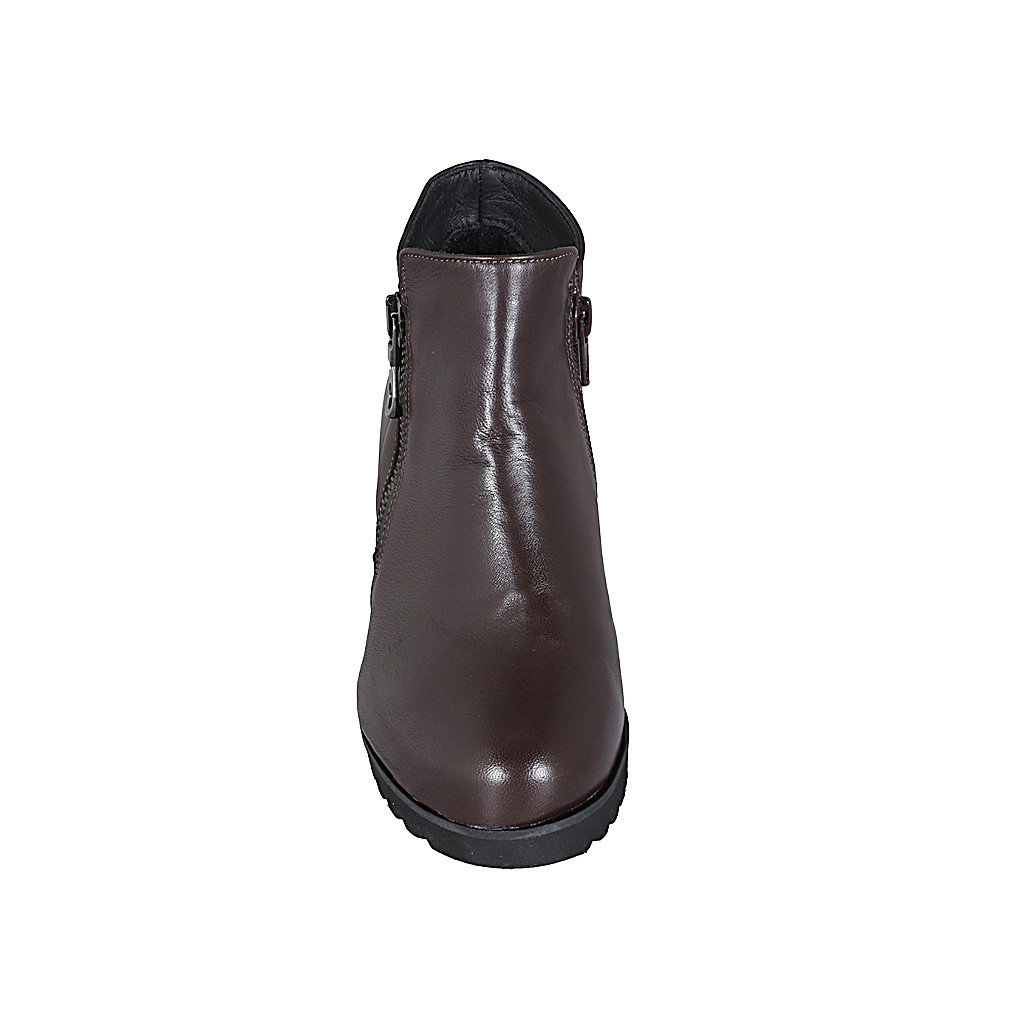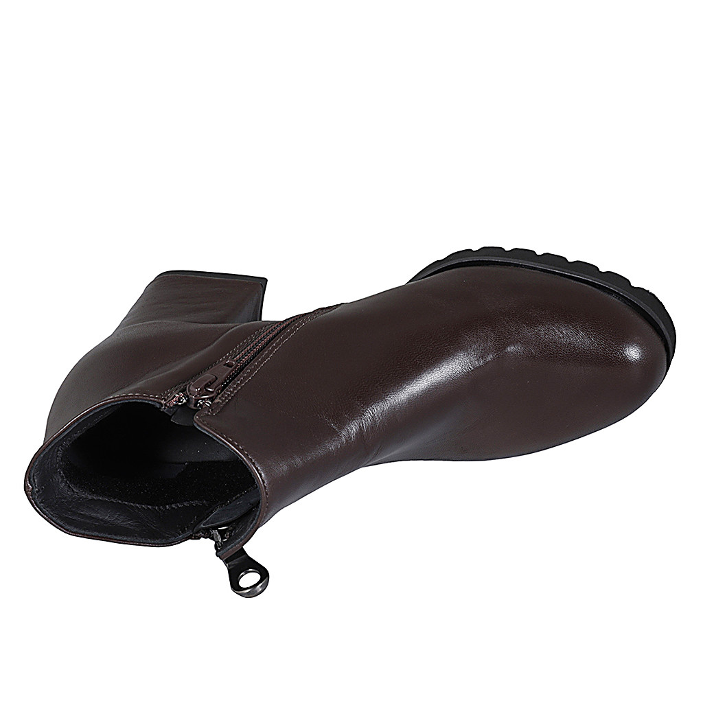 Stivaletto da donna in pelle marrone con cerniere tacco 6 - Misure disponibili: 35, 42, 43, 45
