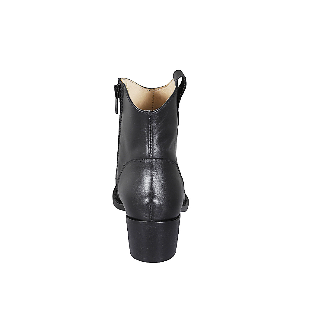 Stivaletto texano da donna con cerniera e ricamo in pelle nera tacco 5
