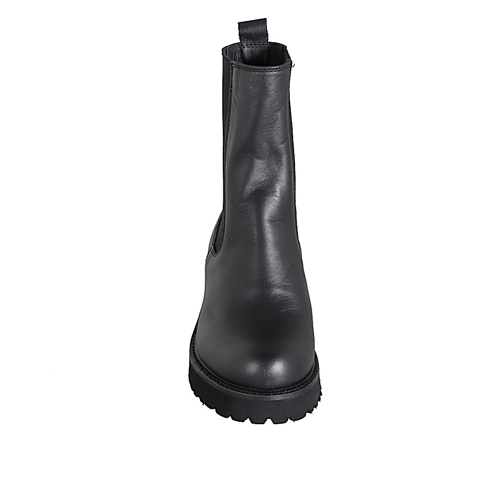 Mocassino a punta da donna in camoscio nero e maculato con tacco 1