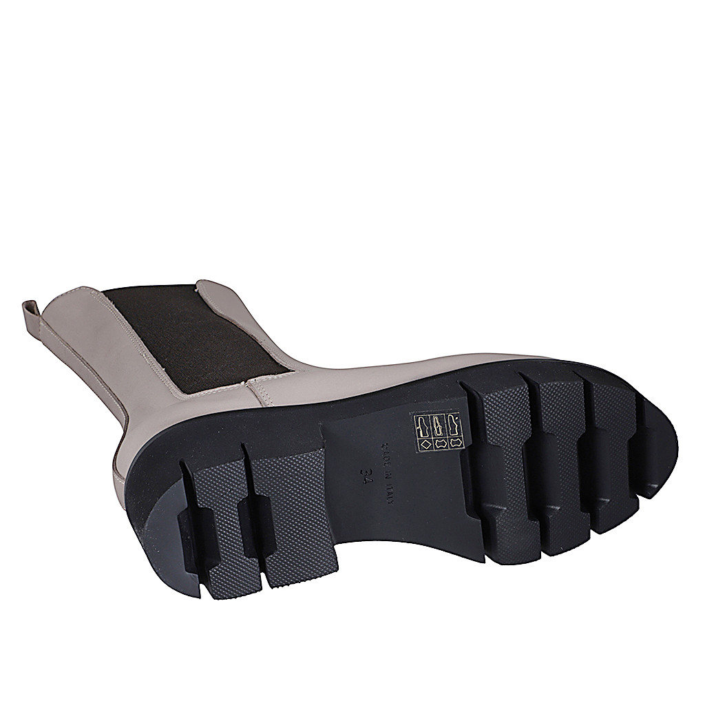 Stivaletto Chelsea alto da donna con elastici in pelle color crema tacco 4 - Misure disponibili: 32, 33, 34, 35, 42, 43, 44, 45, 47