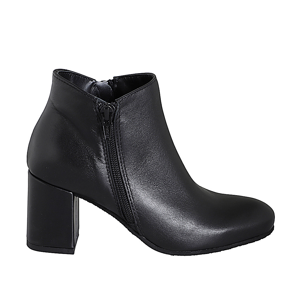 Stivaletto da donna in pelle nera con cerniere e plantare estraibile tacco 7