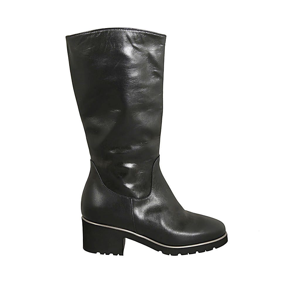 Mocassino da donna in pelle nera con accessorio dorato con tacco 4