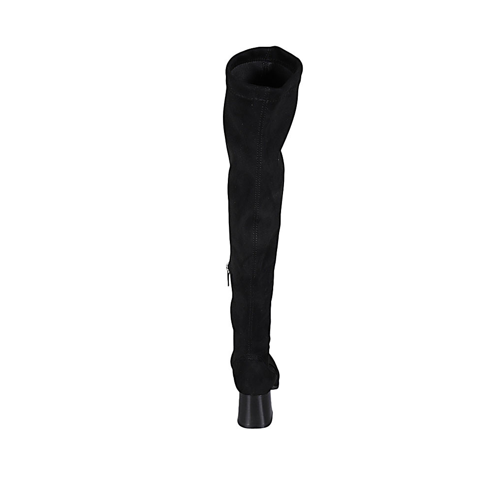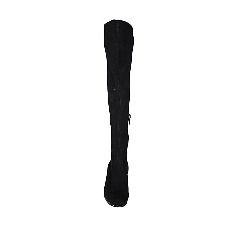 Stivale sopra al ginocchio da donna in camoscio ed elasticizzato nero con mezza cerniera tacco 6