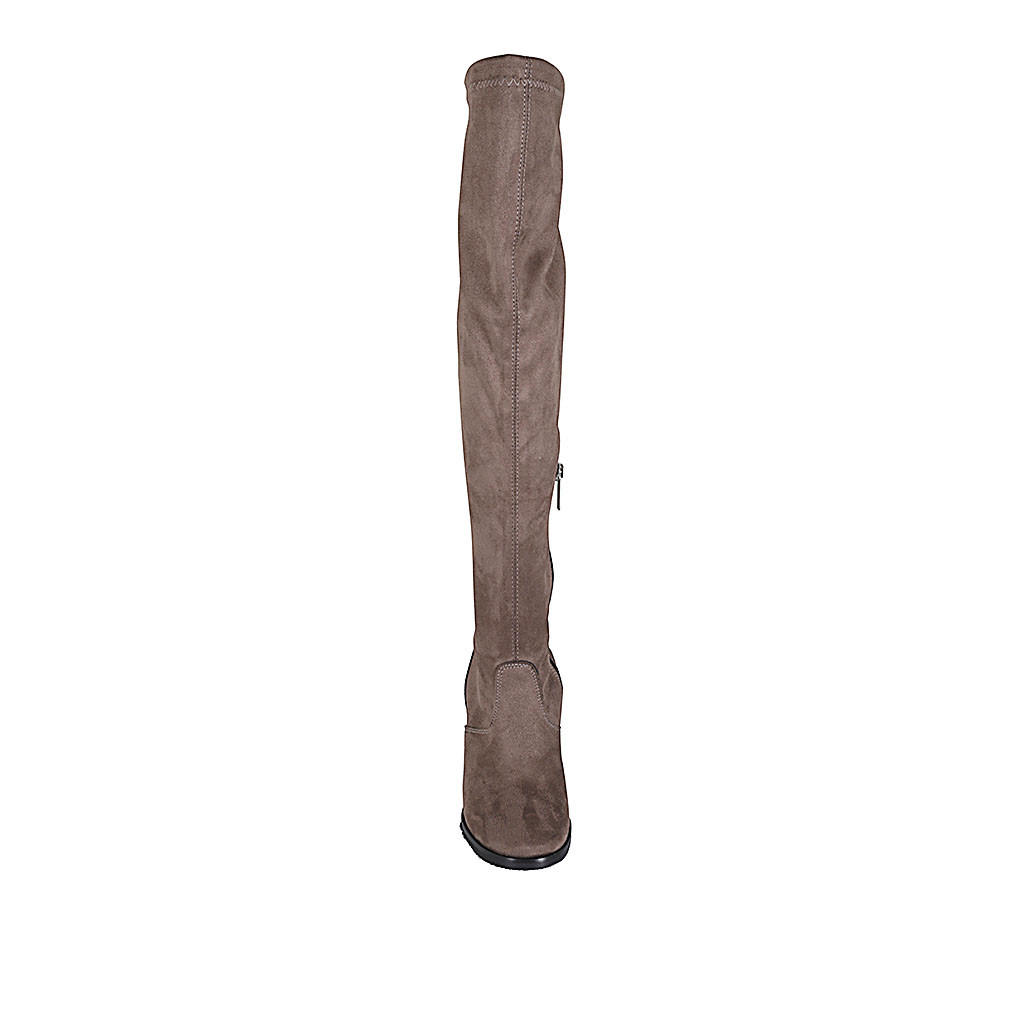 Scarpa accollata da donna in camoscio beige e camoscio stampato laminato platino zeppa 4