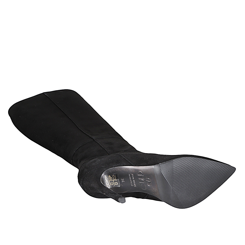 Mocassino da donna con accessorio, elastici e plantare estraibile in pelle e vernice nera zeppa 4
