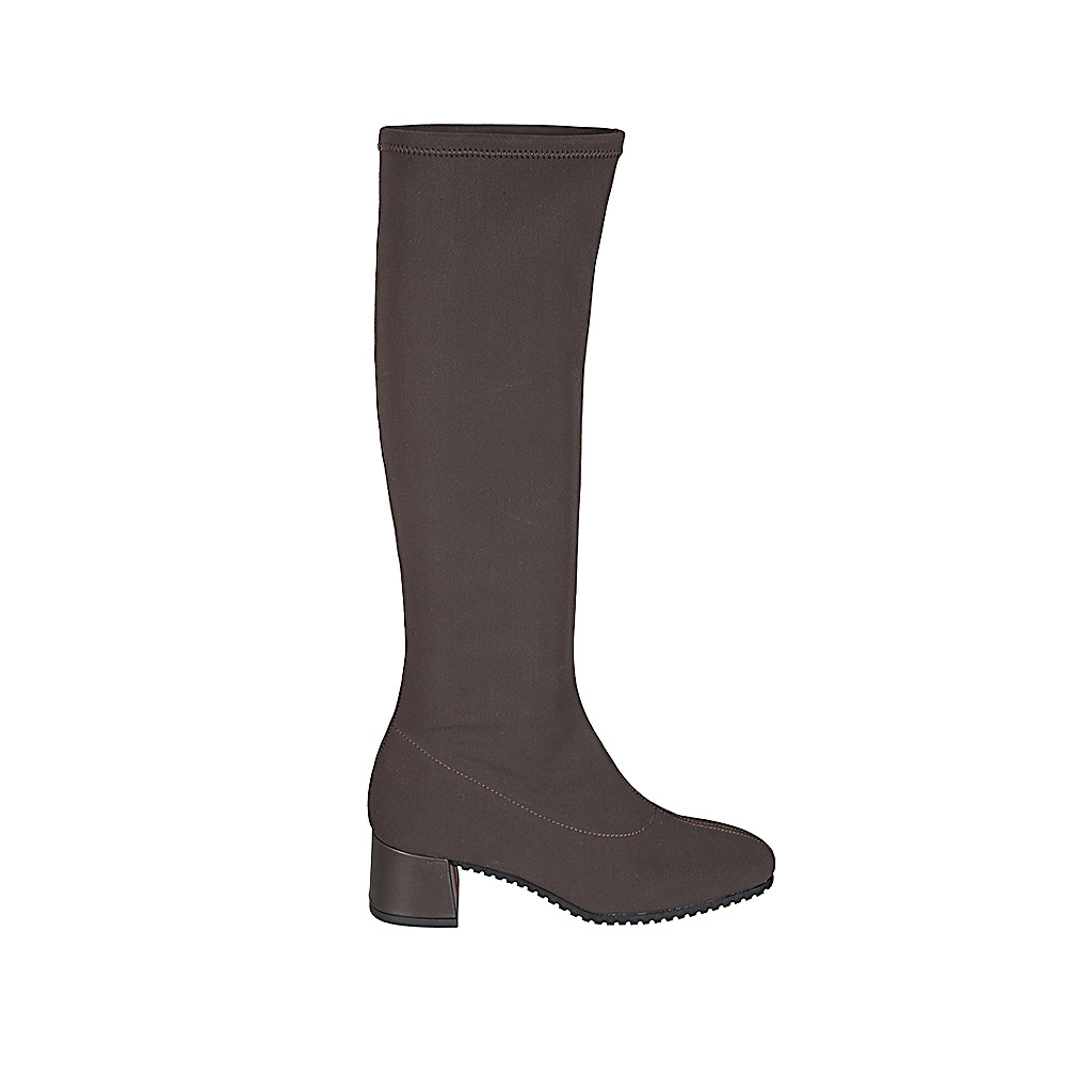 Stivale da donna in tessuto elasticizzato marrone tacco 5