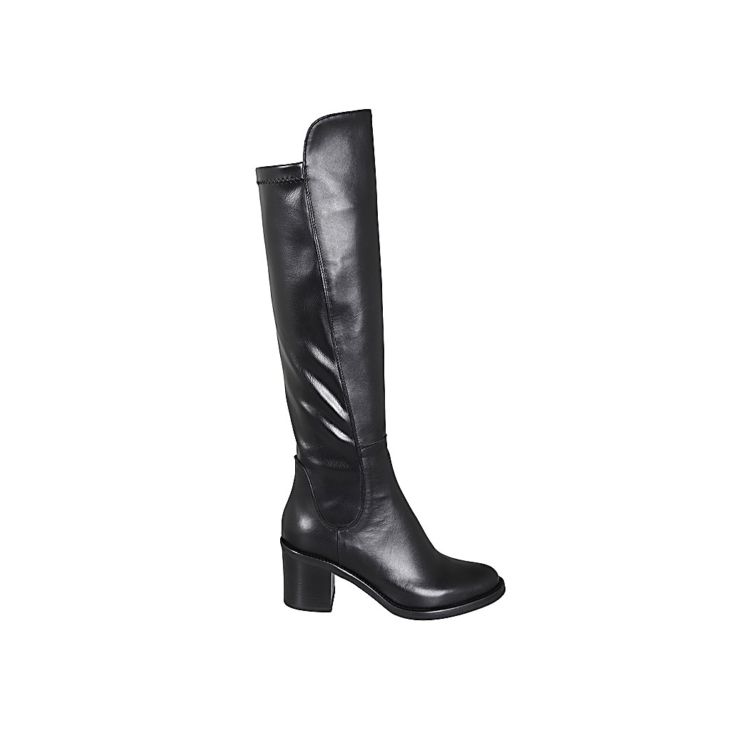 Stivale da donna con mezza cerniera in pelle ed elasticizzato nero tacco 6