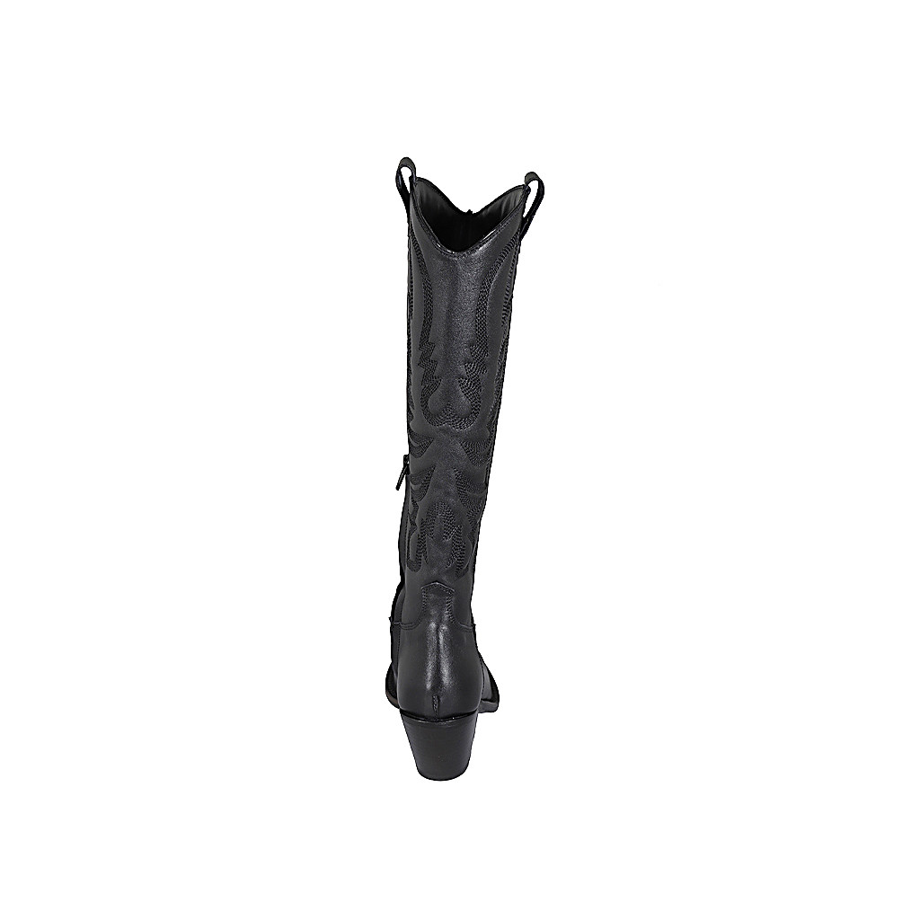 Sandalo da donna in pelle stampata laminata nera con plateau e zeppa 12