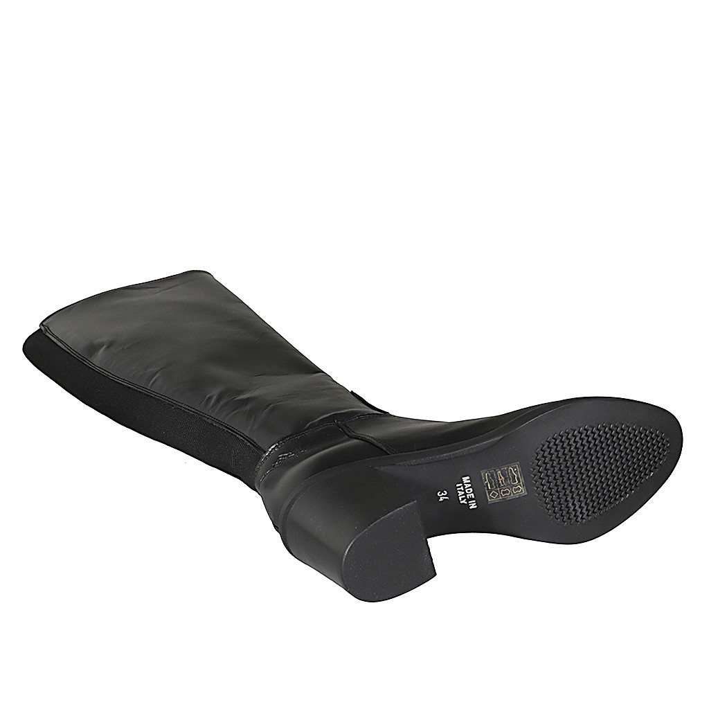 Stivaletto da donna con cerniera e fibbia in camoscio nero e stampato maculato oro tacco 6