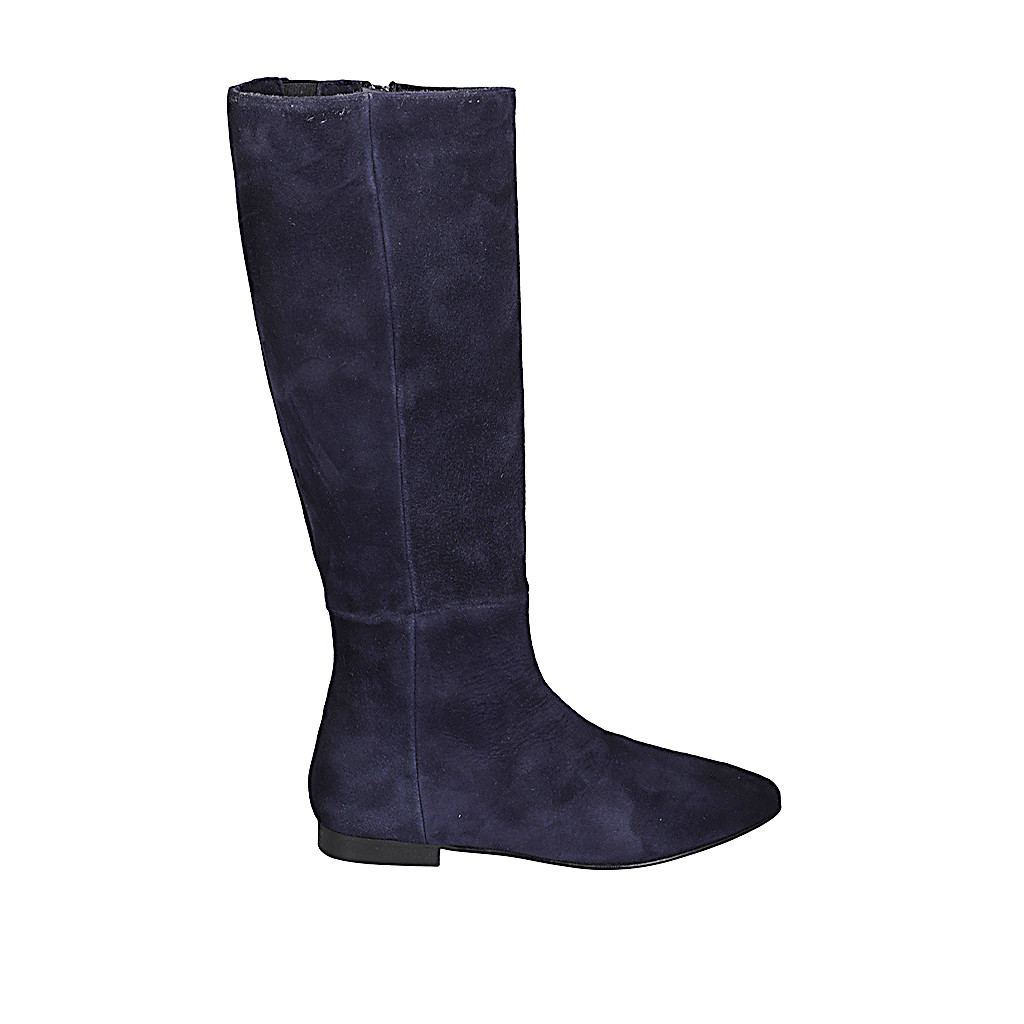 Stivale a punta da donna con cerniera ed elastico in camoscio blu tacco 2 - Misure disponibili: 33, 34, 35, 42, 43, 44, 45, 46