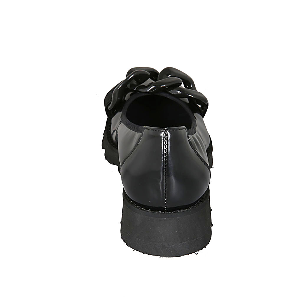 Woman's ballerina shoe with chain in black brush off leather wedge heel 3