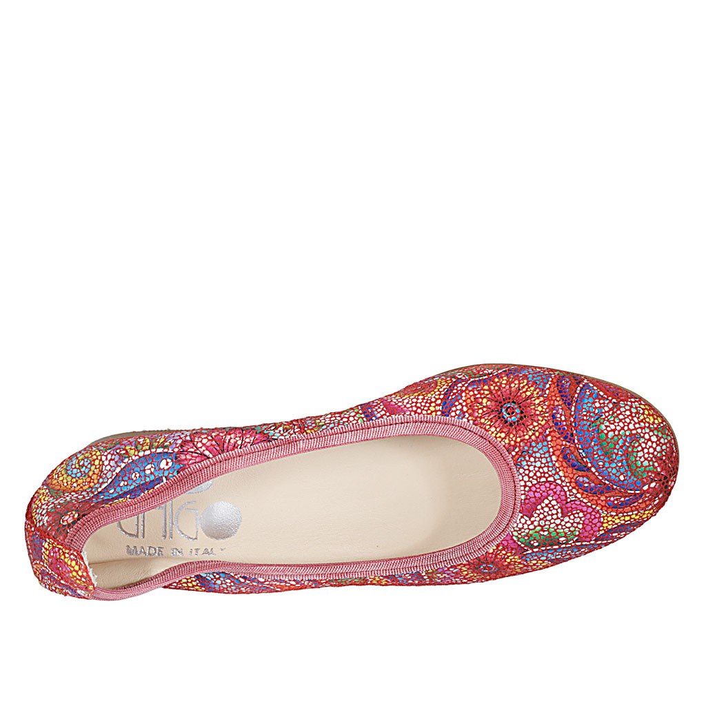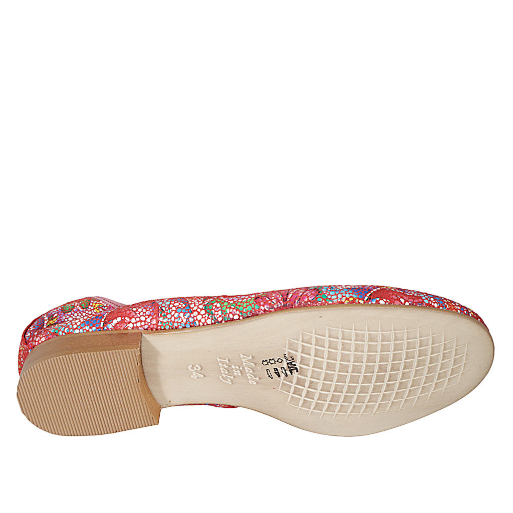 Woman's ballerina shoe in red multicolored printed leather heel 2