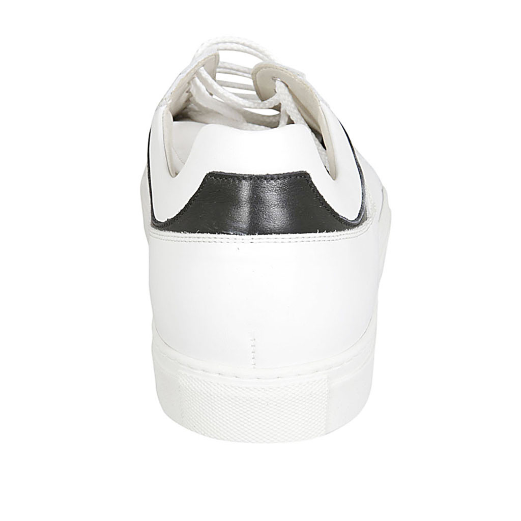Man's laced shoe with removable insole in white and black leather