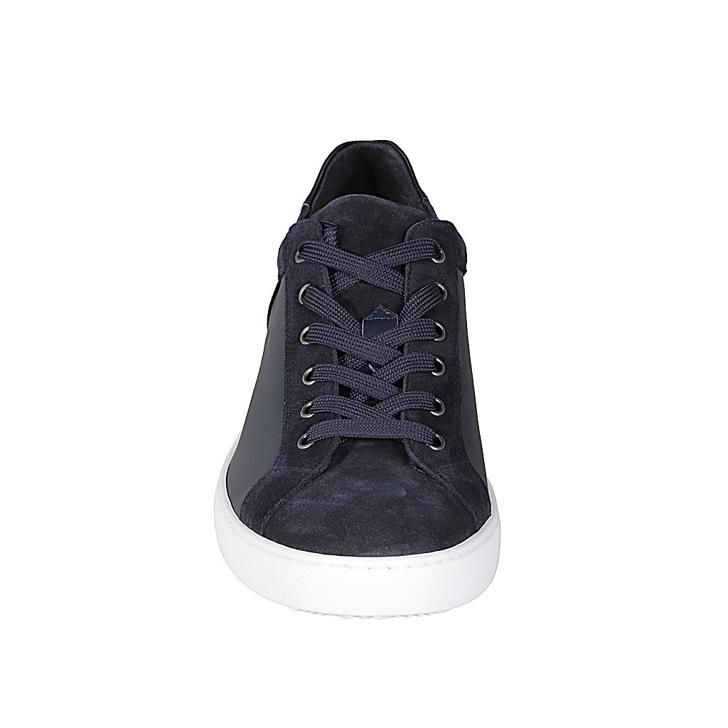 Men's sports shoe with laces in blue suede and leather