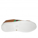 Men's laced shoe with removable insole in cognac brown, maroon and green leather