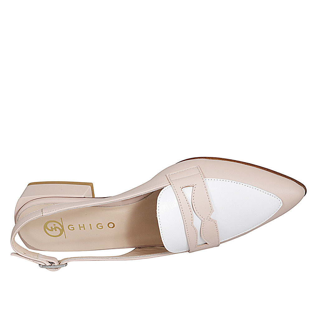 Woman's ankle boot in nude leather with zipper and fur lining heel 4