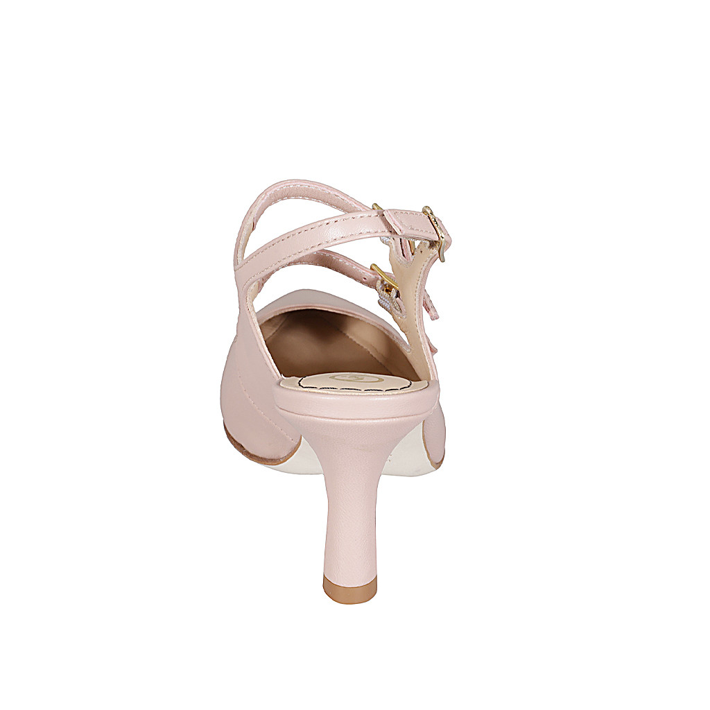 Pointy Mary Jane slingback with two straps in nude leather heel 7