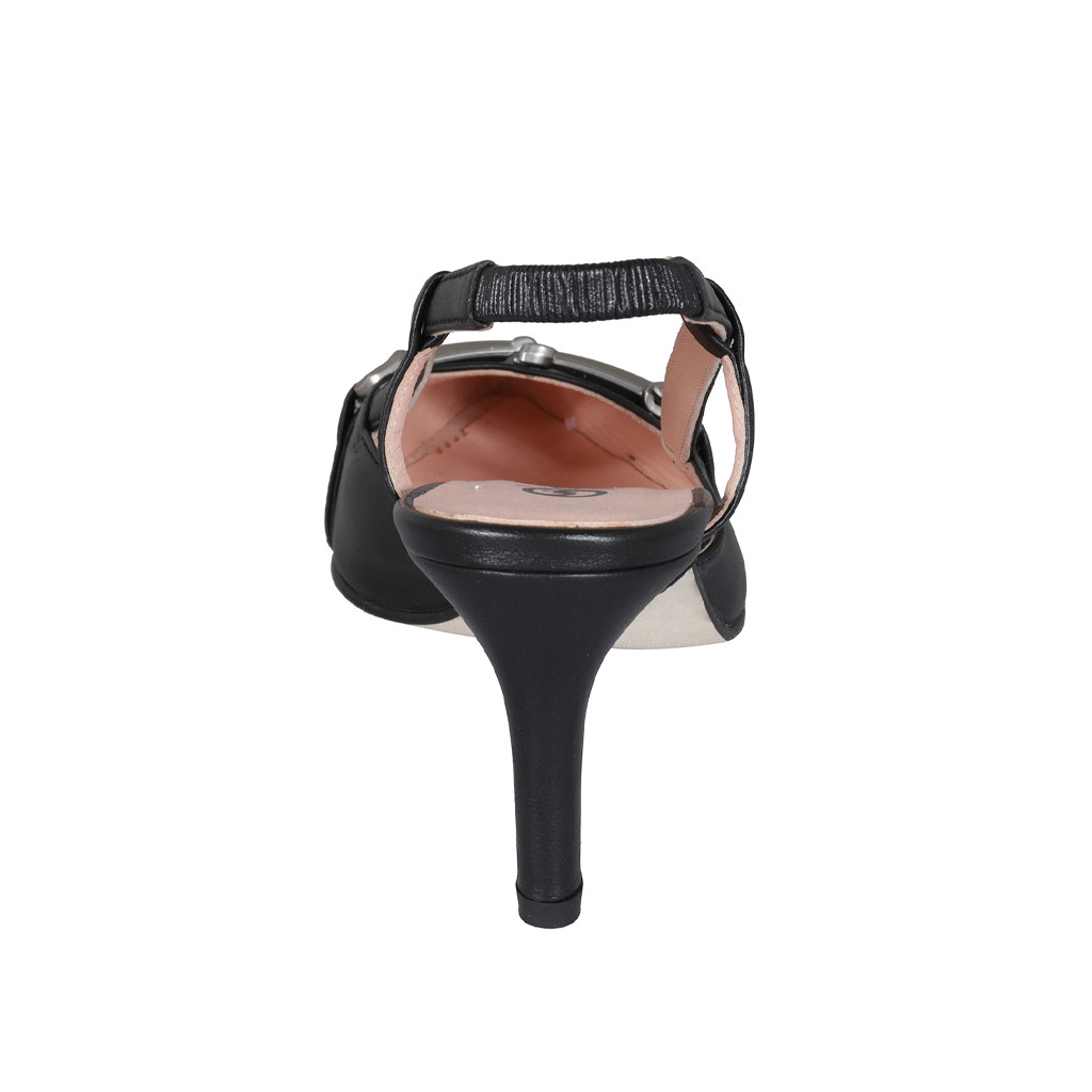 Woman's high ankle boot in black leather with elastic bands heel 4