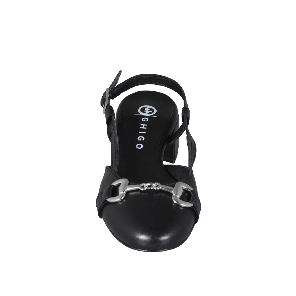 Woman's slingback with rounded tip and accessory in black leather heel 4