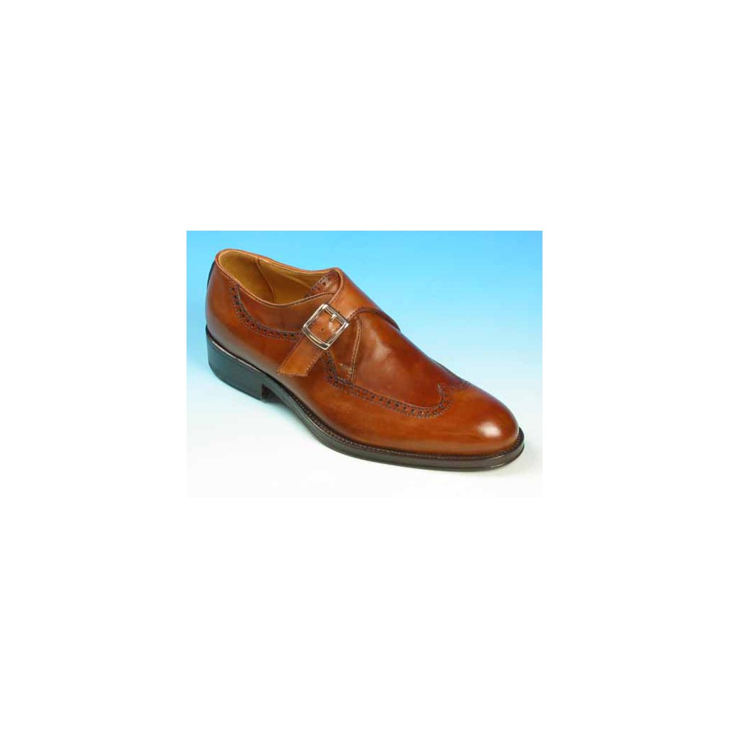 Men's elegant shoe with buckle and wingtip decoratins in cognac brown leather