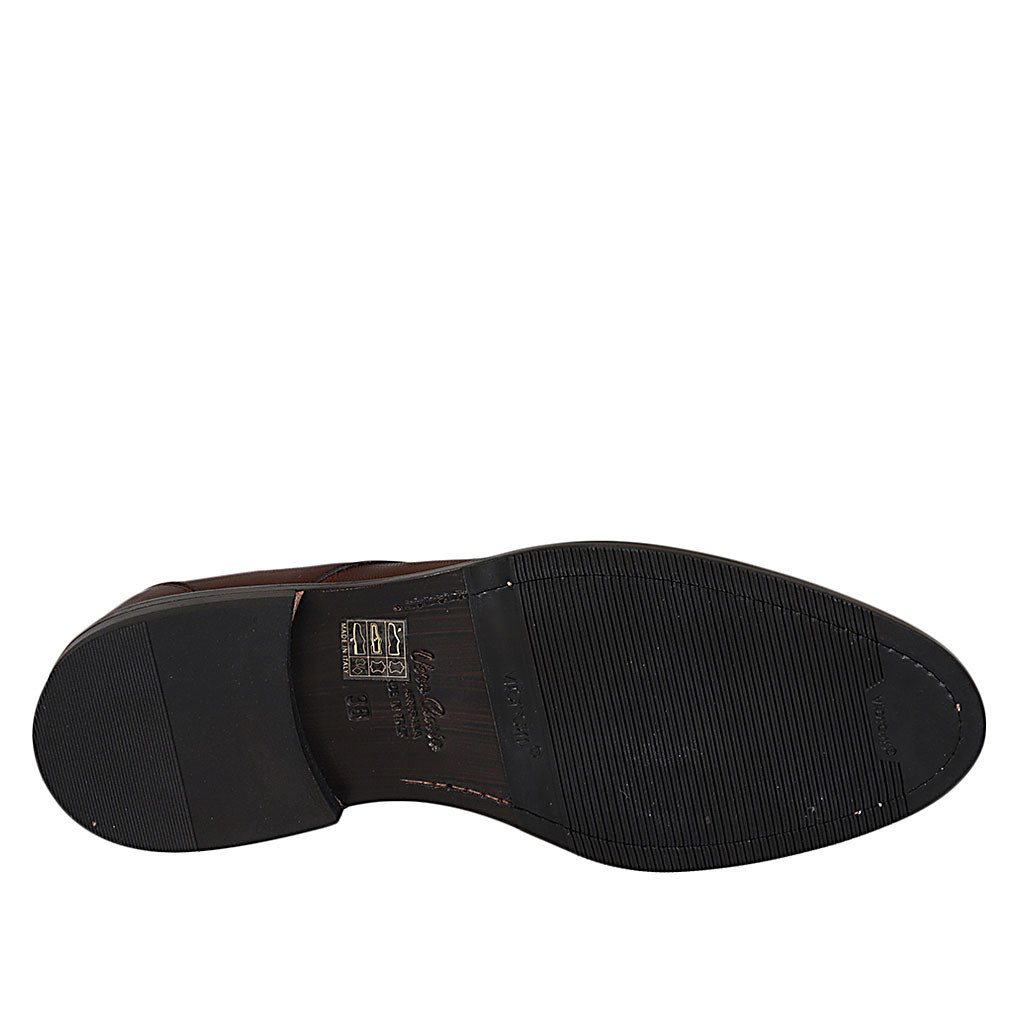 Woman's mule with elastic band and buttons in light green leather wedge heel 4