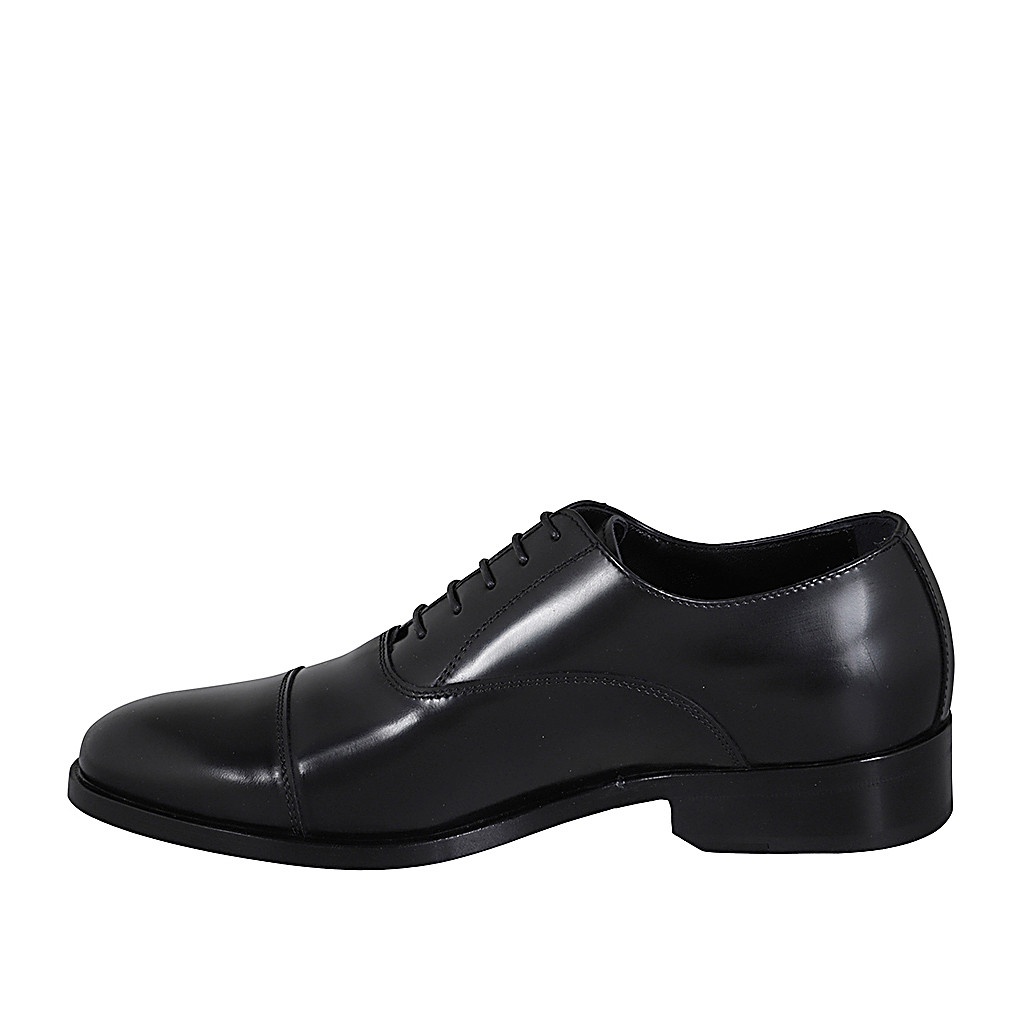 Woman's loafer with elastic bands and removable insole in black patent leather and spotted suede heel 3