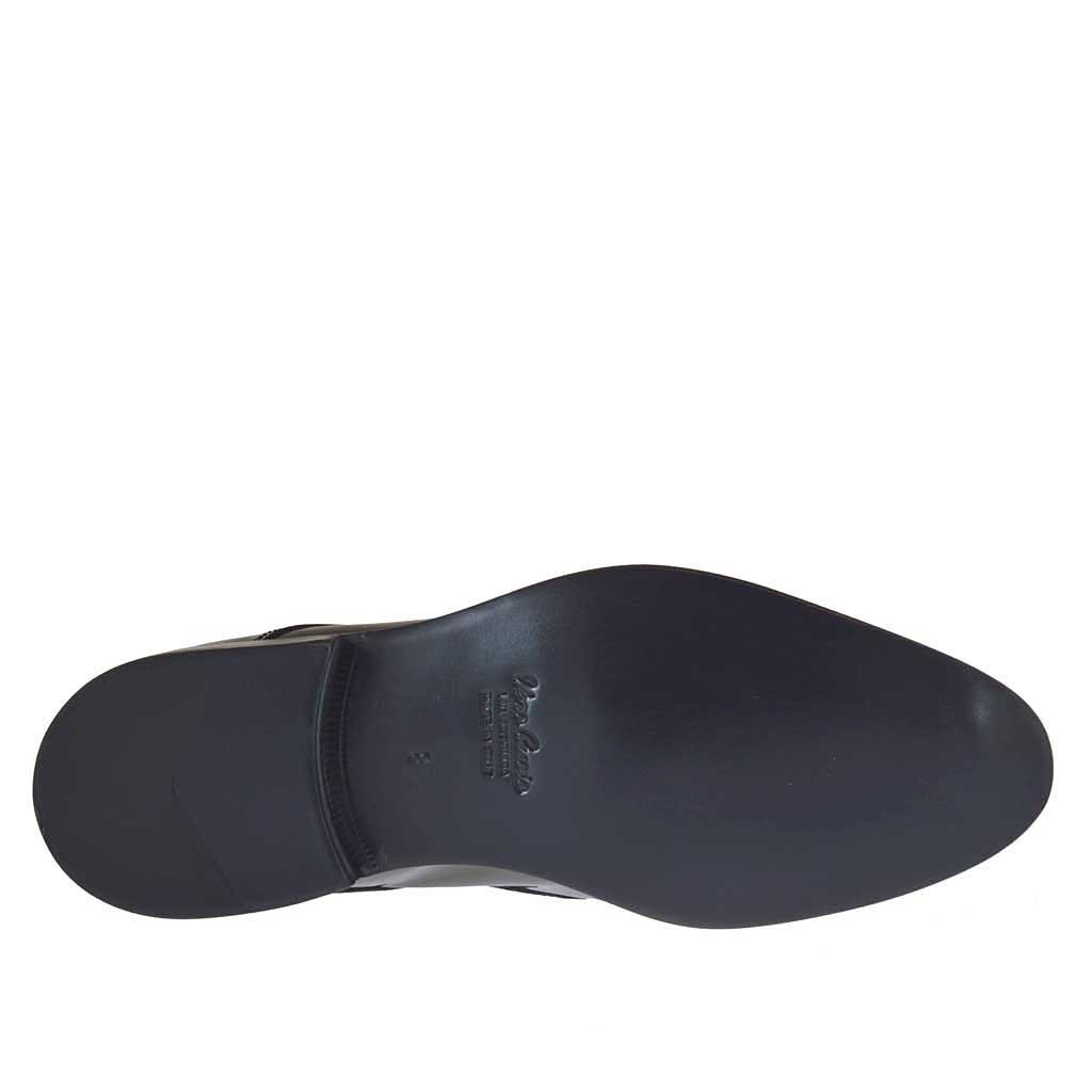 Woman's platform sandal in black leather and laminated fabric wedge heel 7