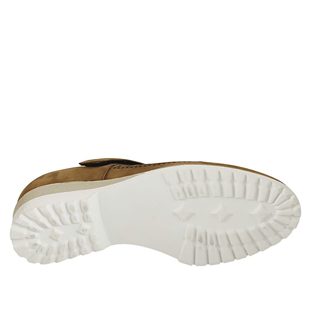 Decolté da donna con velcro e plantare estraibile in camoscio forato color tabacco tacco 4 - Misure disponibili: 31, 33, 34, 42, 43, 44, 45