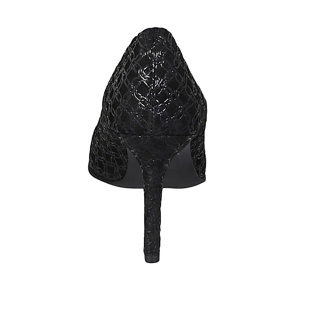 Woman's pump in black printed suede heel 8