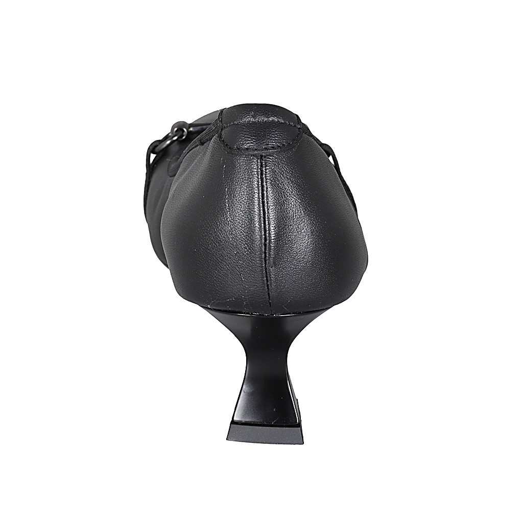 Woman's pointy pump in black leather with silver accessory heel 6