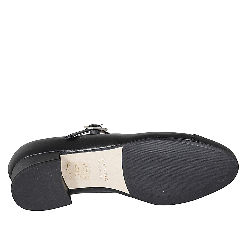 Woman's laced Oxford shoe in black leather with wingtip and heel 7