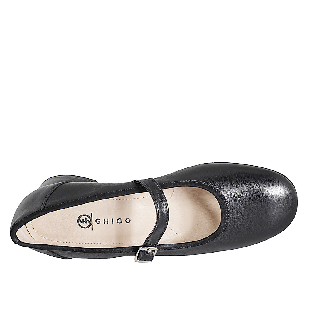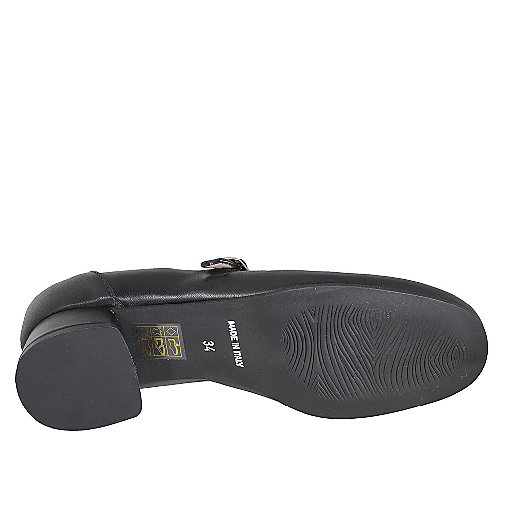 Woman's Mary Jane with rounded tip in black leather heel 3