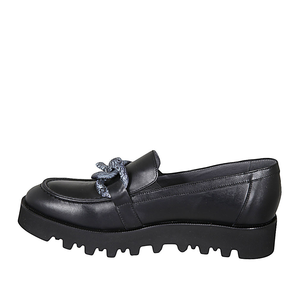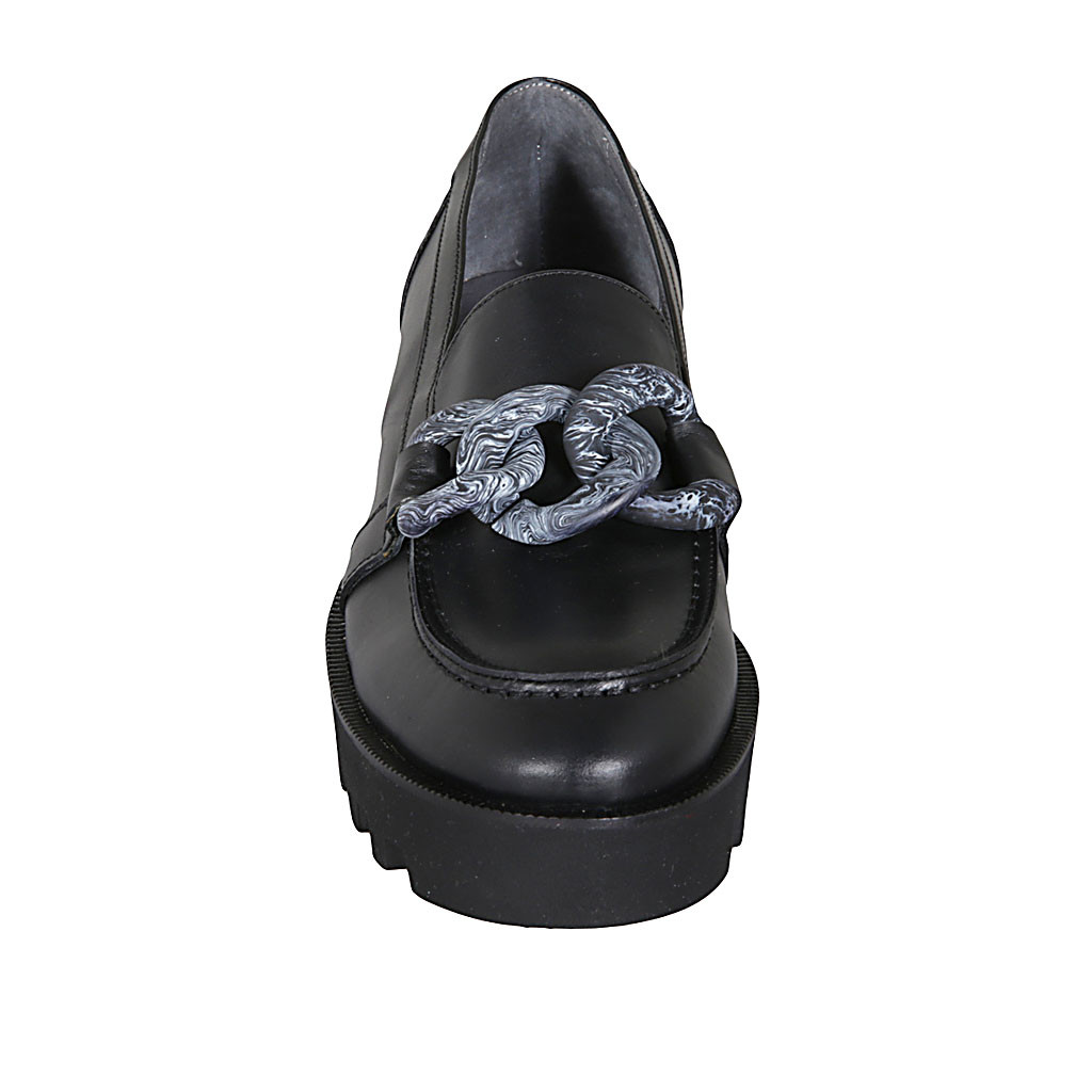 Woman's loafer in black leather with chain wedge heel 4
