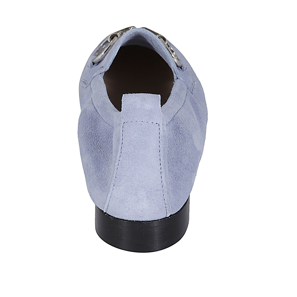 Woman's mocassin with accessory and elastic band in light blue suede heel 2