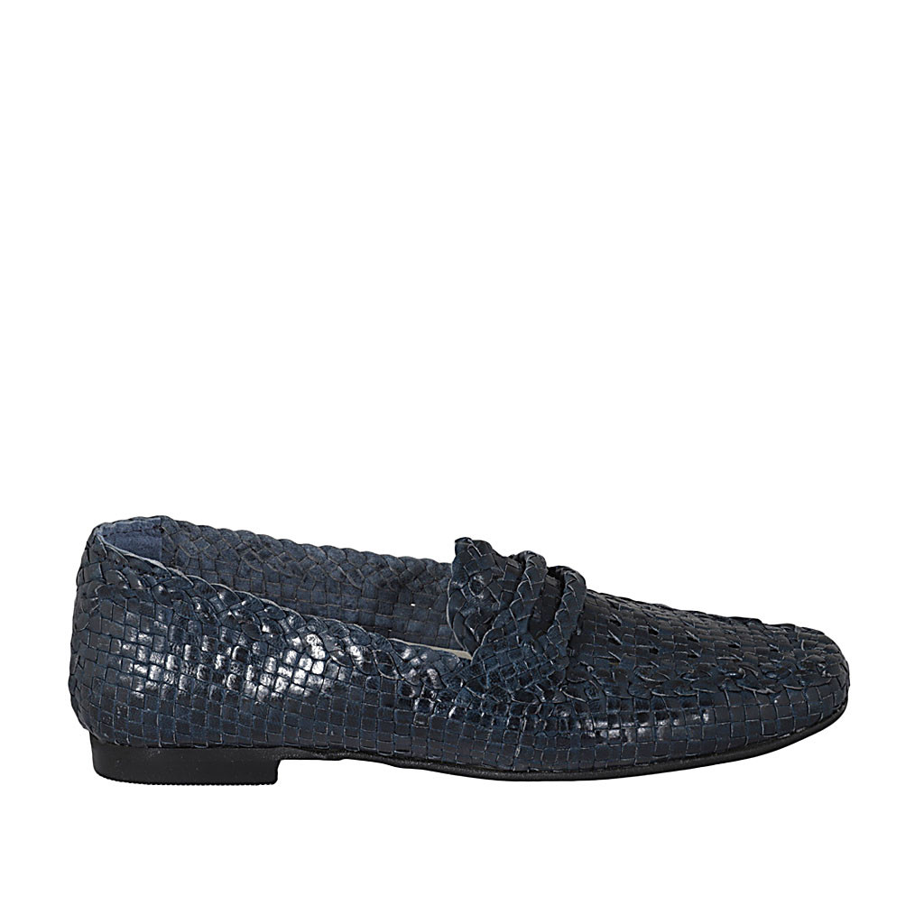 Woman's mocassin with elastic bands and removable insole in platinum laminated pierced leather...