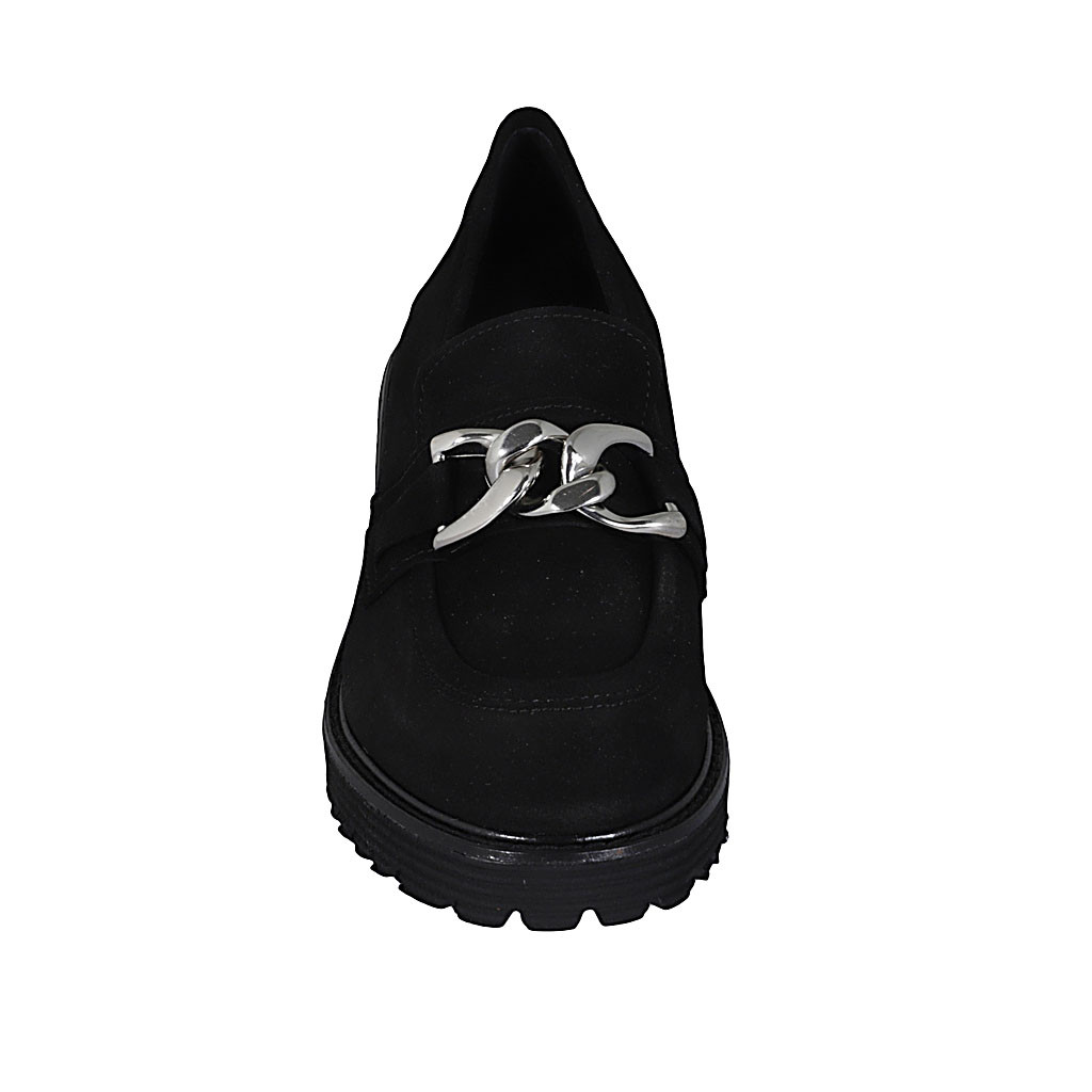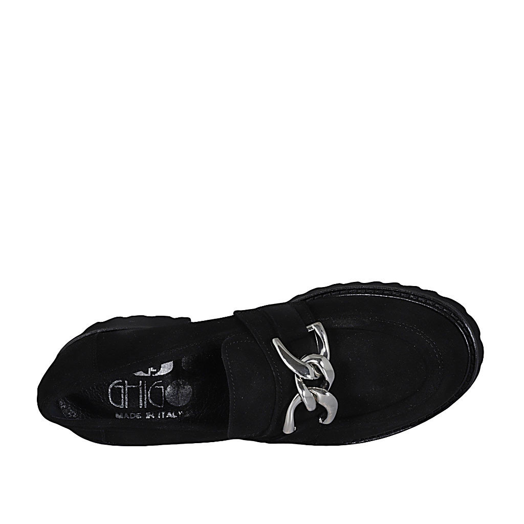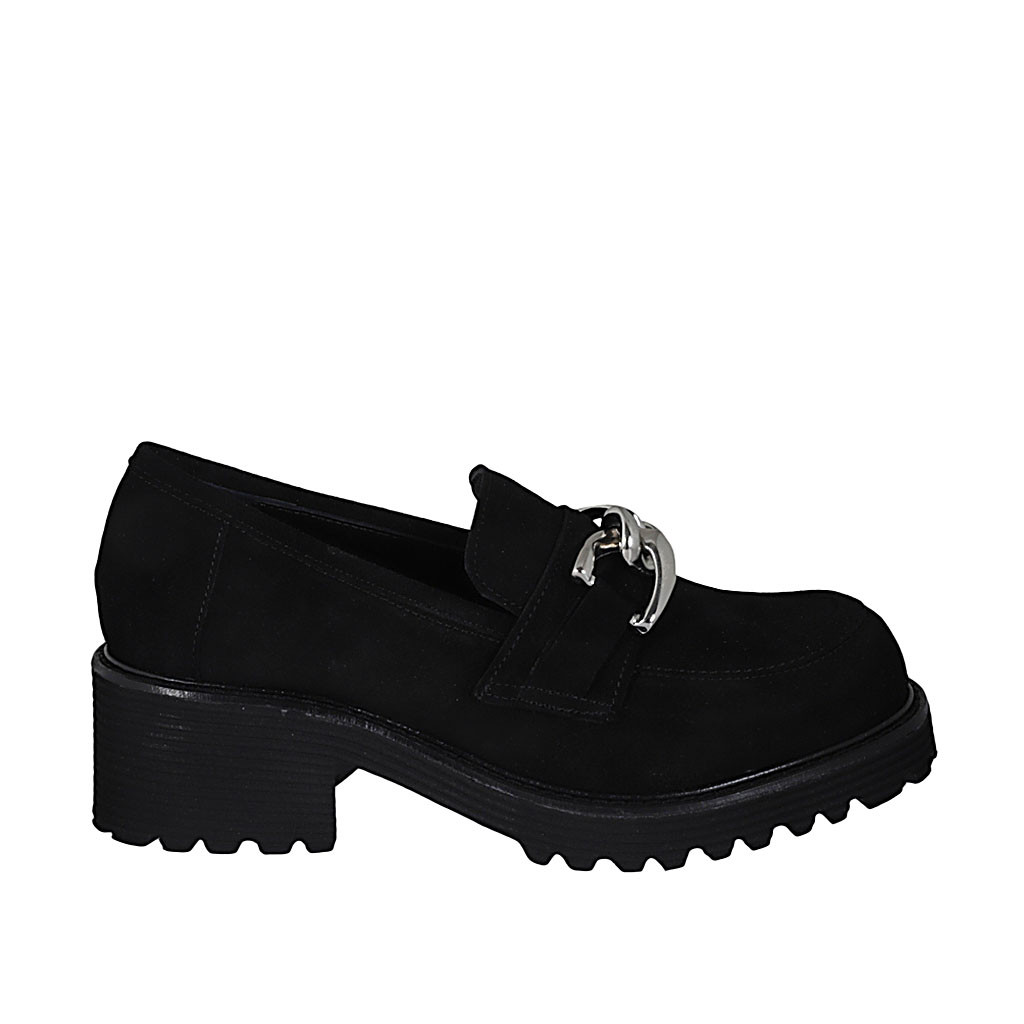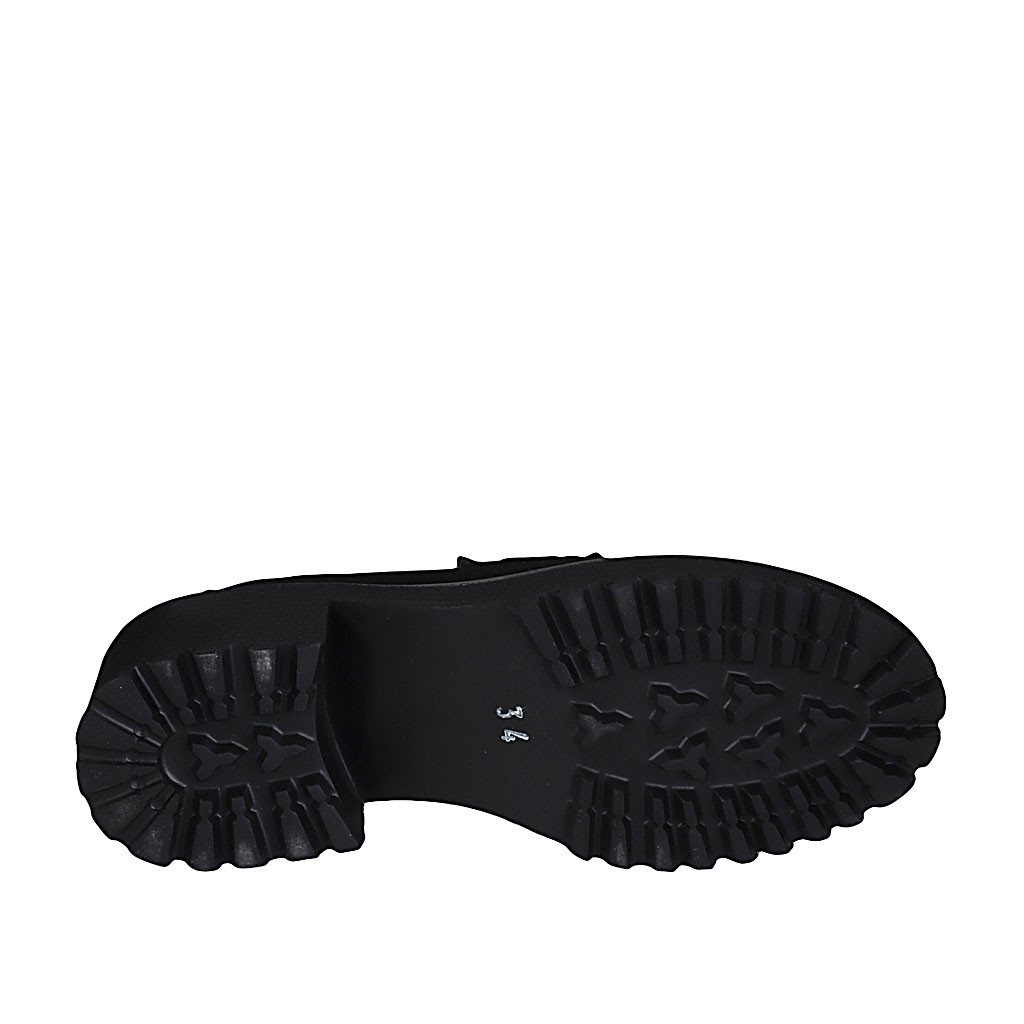 Woman's laced combat style ankle boot with zipper, captoe and buckles in black leather heel 4