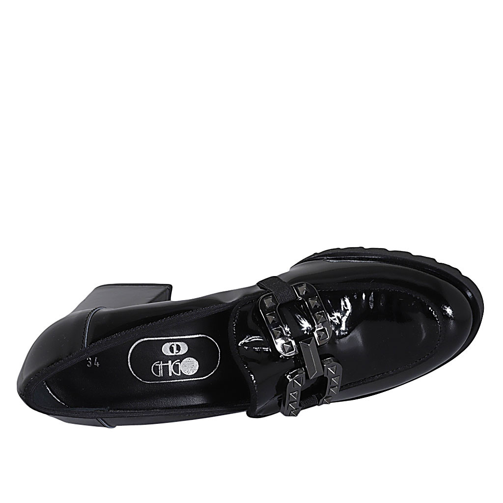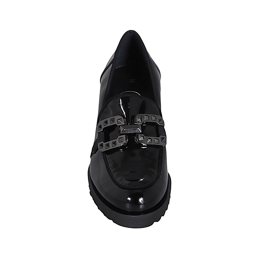 Woman's mocassin with translucent chain in light blue leather heel 4