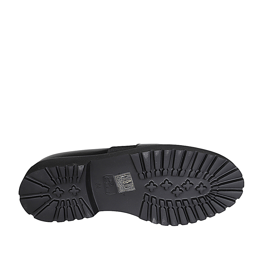 Woman's loafer with elastic bands and removable insole in black patent leather and spotted suede heel 3