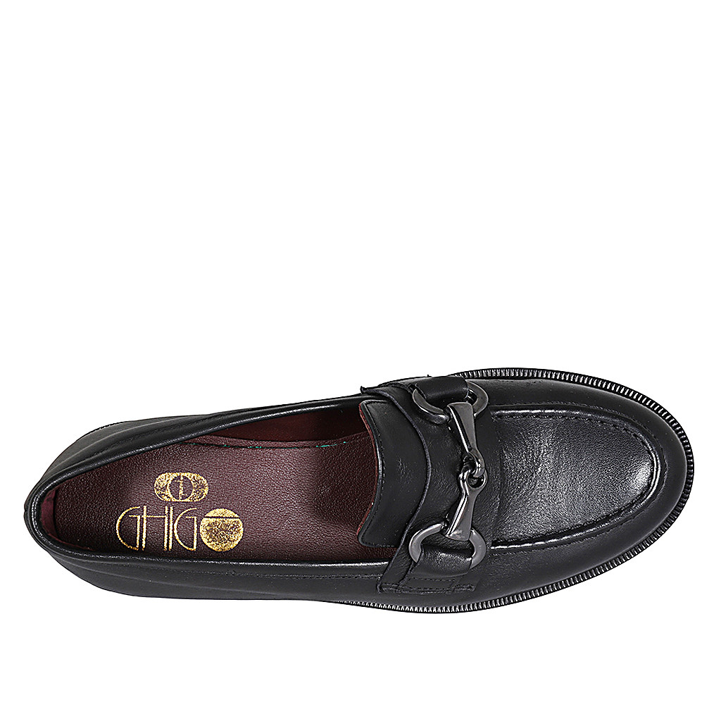 Woman's mocassin with removable insole and accessory in black leather heel 3