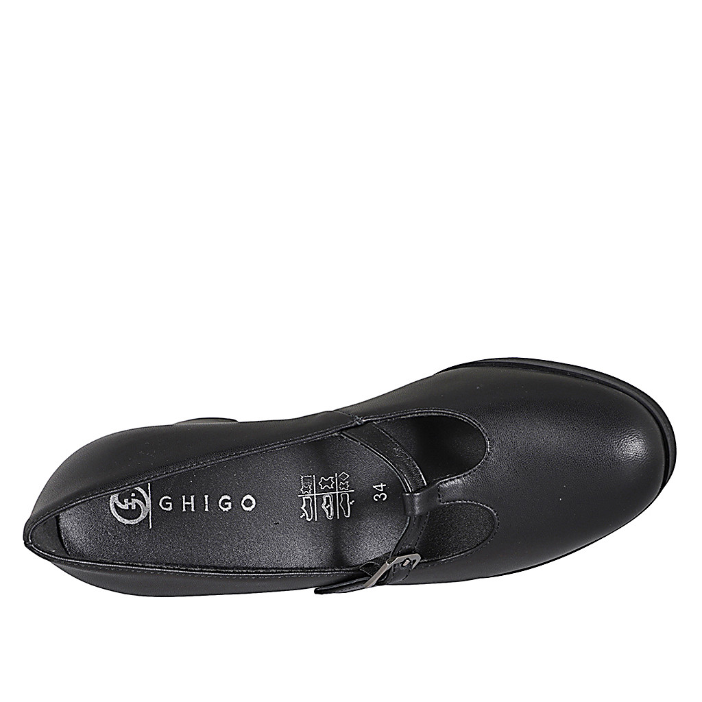 Woman's Mary Jane with T-strap and removable insole in black leather heel 5