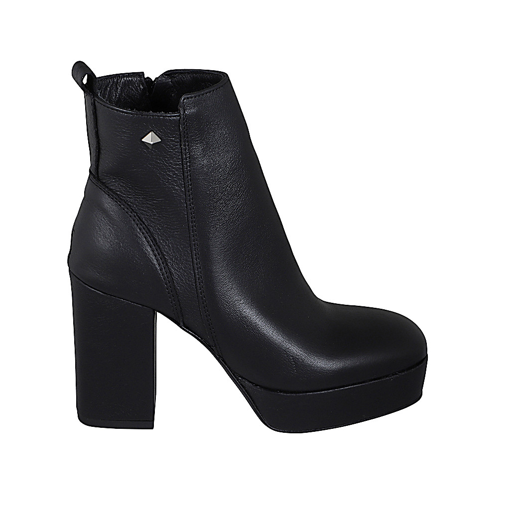 Woman's ankle boot with zipper and studs in black leather heel 9