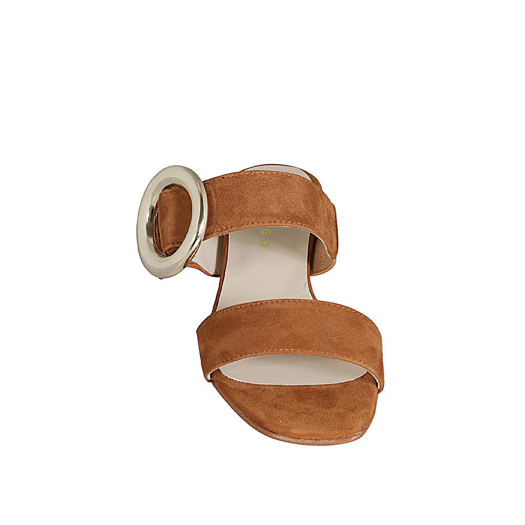 Woman's mules in cognac brown suede with buckle and elastic heel 3